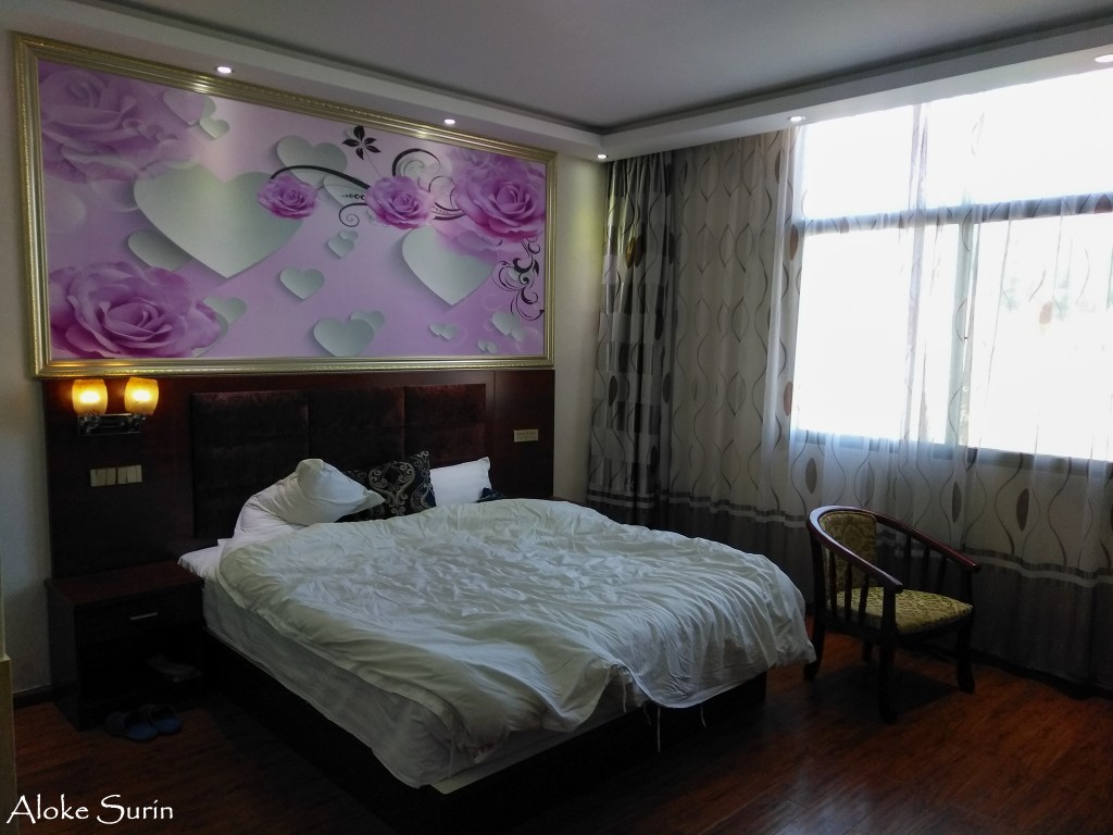 The hotel manager cum caretaker appeared and I checked in via an exchange of smiles and gestures with some help from the Booking.com app on my phone which confirmed that I was a bonafide guest! No words that I could decipher were spoken. The room was extremely large and I was thrilled to have all that space for the 26 Canadian dollars that I had paid. There was an electric kettle which I put to immediate use, brewed myself some tea and settled down with my laptop. It was some time before I realized that Google was inaccessible and I could not read my emails nor surf the internet. Fortunately, I had my journal to write in and a book to read, and the next few hours passed comfortably till I nodded off to sleep.
